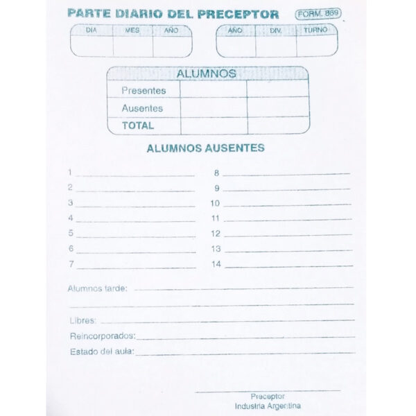 OE.PARTE DIARIO DE PRECEPTOR X500 (869) cantidad